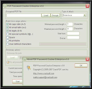 The PDF Password Cracker Enterprise edition was designed to allow to search for owner and user passwords with brute-force and dictionary attacks, effectively optimized for speed. In addition, it has Key search attack, which guarantees the decryption of PDF files that use 40-bit encryption.